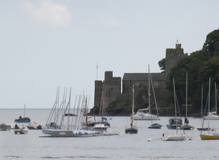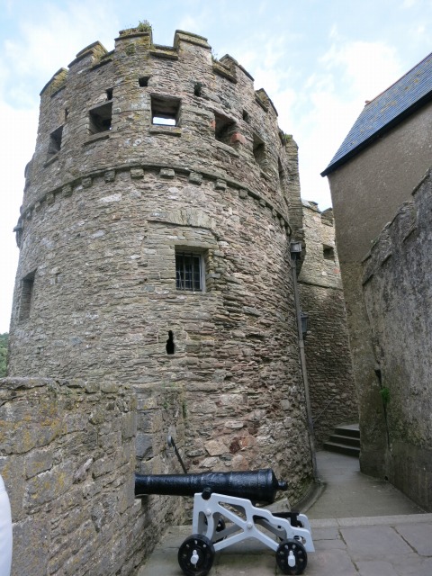 1時40分頃ホテルを出てダートマス城に向かった。ダートマス城は町の中心部から南に2kmほどのところにある。右にダートマスの街並み、左にダート川や対岸のキングズウェアを眺めながら歩いた。港には信じられないほど沢山のヨットが係留され、色々な船が行きかい、川を望む斜面にはクリーム色やピンク、水色など淡い色とりどりの家々が美しい。風景を楽しみながら快適なウォーキングであった。1時間弱で着いたダートマス城は河口の岬の突端、海を見渡す位置にある。最も古い部分は14世紀に建てられたとのこと。城に隣接する教会St. Petrox Churchの建物と墓地に挟まれた細い道を進むと城のエントランスがあった。入場料は成人£5.70、学生と60歳以上は£5.10。城は海からの脅威に備えた要塞の作りで、16〜19世紀の色々なタイプの大砲を備えた塔(Gun Tower)、オープンな砲台、弾薬庫、火薬庫等々があった。日本の城とは異なる分厚い石造りであるが、塔の各階の床は木製、急な木の階段は日本の城を思い出させ、壁には大砲を撃つための開口部のほかに日本の城にあるような鉄砲狭間(鉄砲を打つための内側が広く外側が狭い窓)があるなど日本の城との類似を感じ興味深かった。対岸にはキングズウェア城が見え、北の方にはダート・マリーナ・ホテル西方の高台にある王立海軍兵学校の茶色の建物を見ることができた。最後に教会内部を見て3時50分頃帰途についたが、二名は城から町の桟橋まで行くフェリーに乗るとのことで分かれて川に降りて行き、他のメンバーはほぼ同じ道を歩いて帰った。
