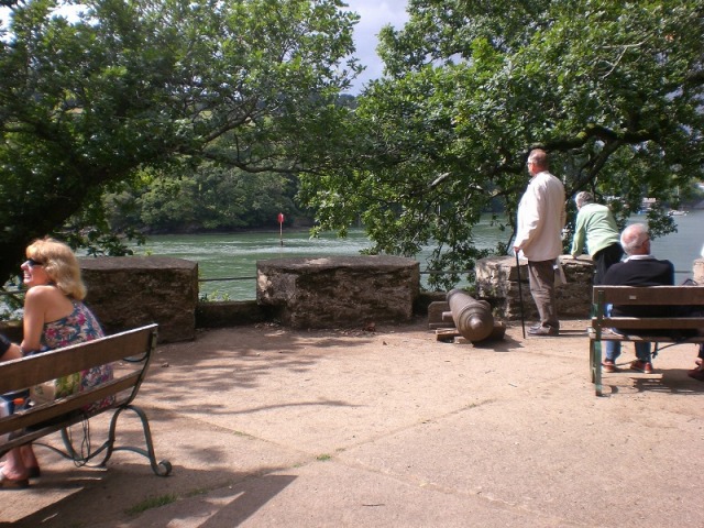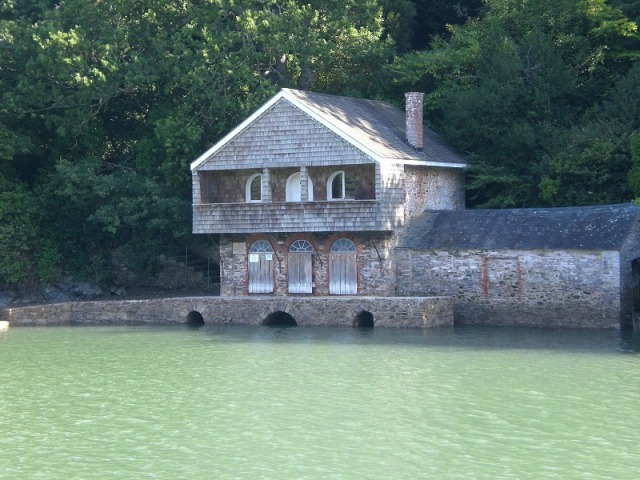心ワクワクしながらGreenwayが右舷側にあるので右側を占領し、カメラを向けスタンバイOK。「この辺の上にGreenwayが見えるはず」(実際には木が生い茂ってほんのちょっとしか見えず)とか言いつつ、Boat Houseが見えた時は大興奮(「あの中に死体が」と言うのがお約束)。『死者のあやまち』によれば「右手に見えますのがナス屋敷(Greenway House)、左手に見えますのがガミガミ屋のおかみを連れて行って置き去りにして来るグースエーカー・ロックです」とアナウンスされることになっているが、なにせ英語が聞き取れないうえに、おしゃべりが絶えないので……。