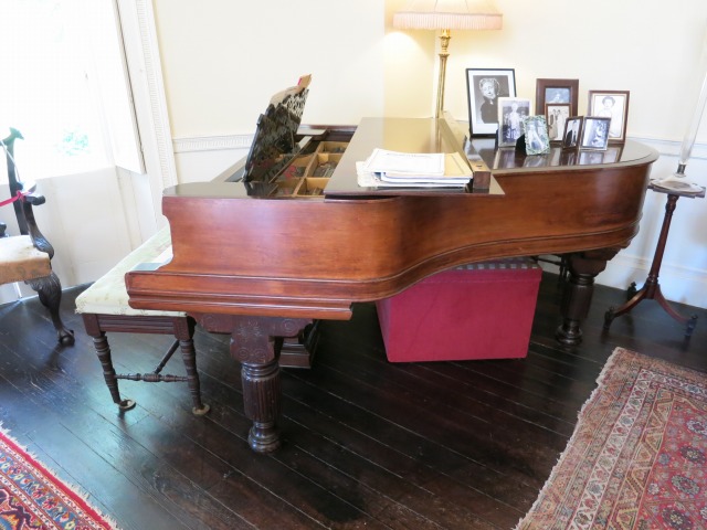 Greenwayの桟橋に到着するやいなや、二人駆け出すのは切符購入の為。早きこと風のごとく、あっという間に坂を上り木の間に隠れる。そのお蔭もあって順調に皆で入場し、まずはアガサがその傍らで撮った写真がある、大きなマグノリアの木の隣に白くそびえるGreenway Houseへ。管理するNational Trustのガイドは当然英語なので、英語不案内の私はひたすら我が一行の後を、前回訪れた時の話などを聞きながら付いて行く。前回は写真撮影禁止だったそうだが、今回はフラッシュ撮影でなければOKとのこと。皆バシバシと写真を撮る。