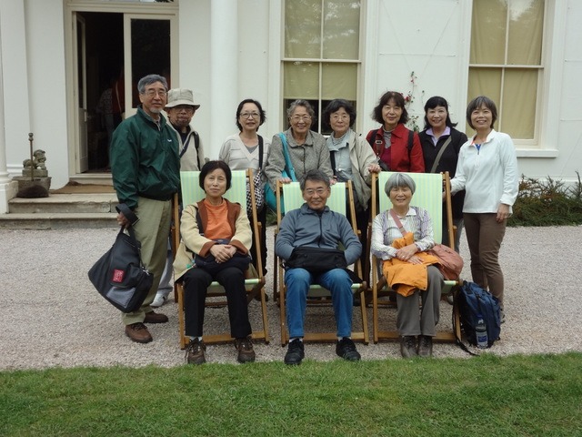 前回はTorquay駅で記念の全員集合写真を撮ったが、それに倣って今回はPaignton駅で記念写真を撮ることにしていた。クリスティの娘ロザリンドさんに迎えられ、夫マローワンさんとは別れの握手をした私にとって懐かしい駅だからだ。そこで若い駅員に手の空いた時にシャッターを押して貰ったのだが、何人かの視線はカメラを向いていない。記念写真としては完全な失格なので、代わりに見つけたのが次頁の写真。40年以上前は、玄関横のデッキチェアに座るマローワン夫妻に挟まれて緊張しっぱなし状態であったが、今回は同じ場所で、同じようなイスに座りながらも、参加者の皆さんと同じようにリラックス出来たのであった。